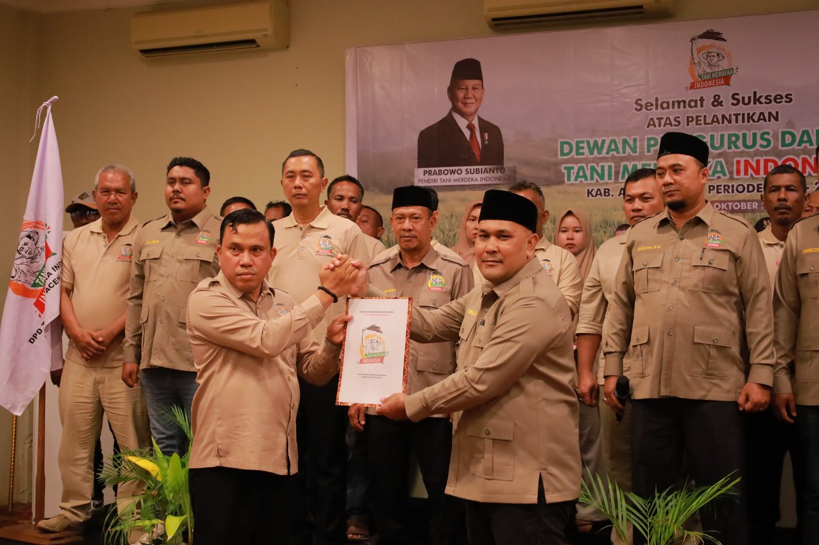 Bupati Tarmizi menyampaikan apresiasi dan dukungan penuh terhadap pengurus DPD Tani Merdeka Indonesia yang baru dilantik. Ia berharap organisasi tersebut dapat bersinergi dengan pemerintah daerah dalam memperkuat sektor pangan dan meningkatkan kesejahteraan petani.