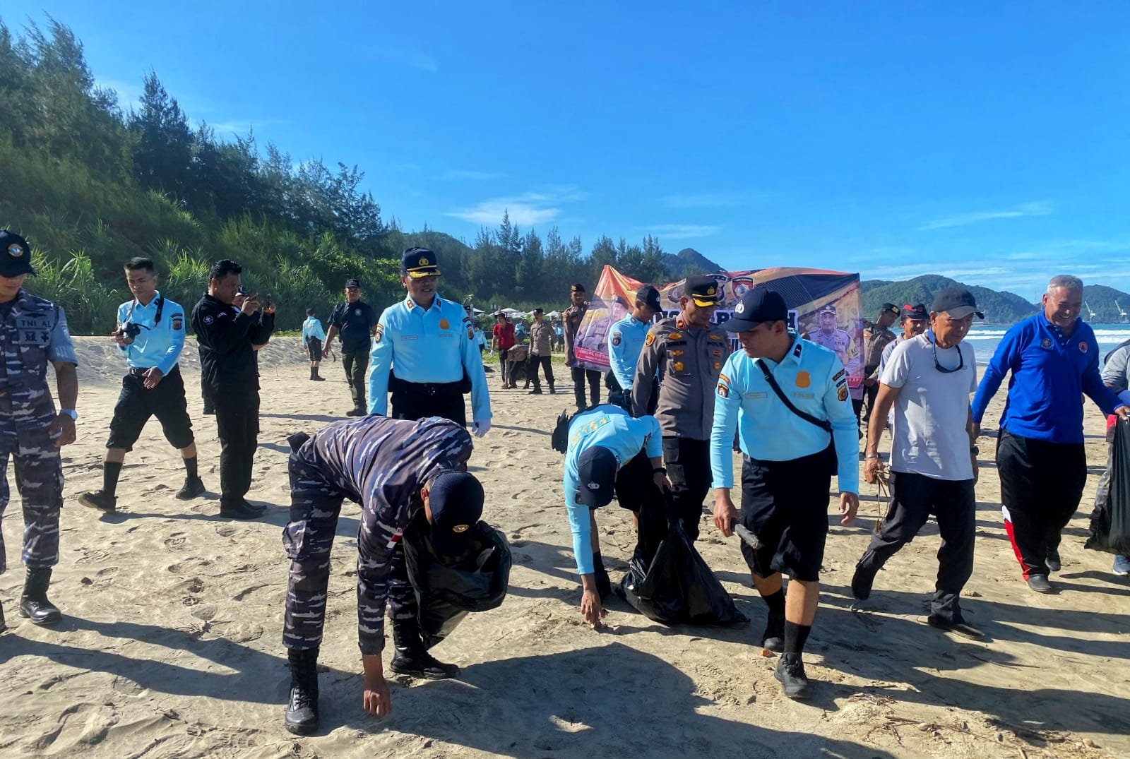 BSINews.id | Aceh Besar – Personel Ditpamobvit Polda Aceh bersama Polres dan Pemkab Aceh Besar menggelar kegiatan Minggu Bersih di objek wisata pantai, Kecamatan Lhoknga, Kabupaten Aceh Besar, Minggu, 21 April 2024.
