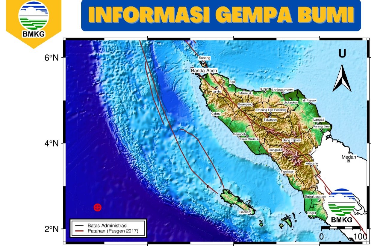 BSINews.id | Banda Aceh – Badan Meteorologi, Klimatologi, dan Geofisika (BMKG) Aceh menginformasikan, daerah wilayah Samudra Hindia Barat Aceh, diguncang gempa bumi tektonik berkekuatan 6,3 Magnitudo (M).