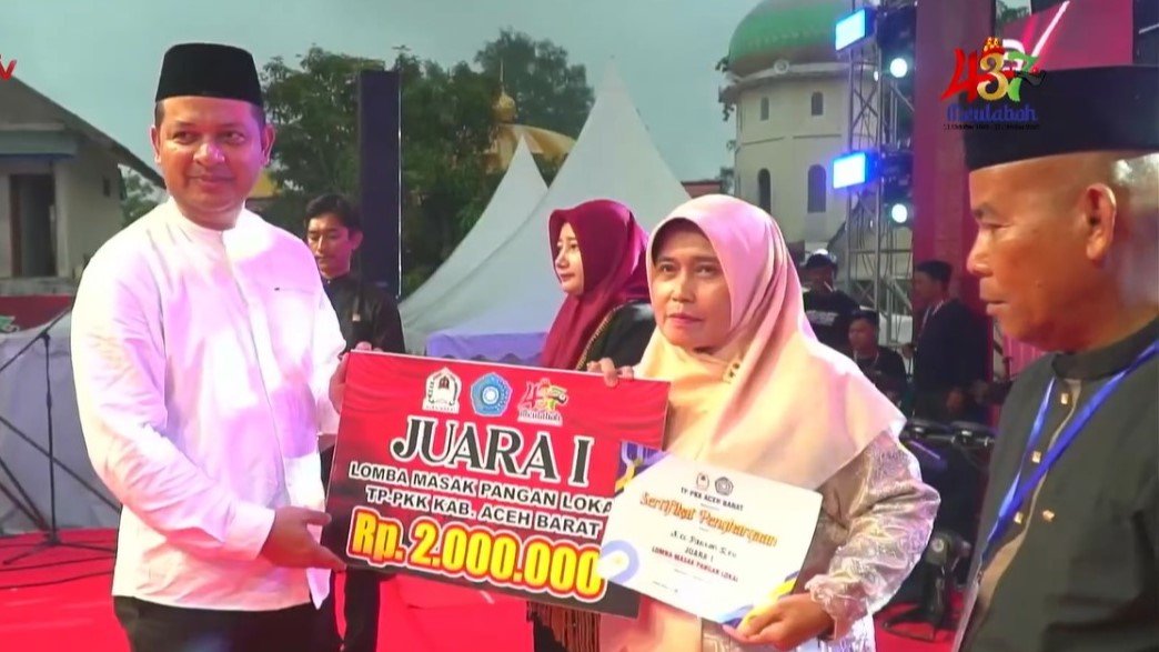 BSINews.id | Aceh Barat – Suasana meriah mewarnai kegiatan penyerahan hadiah Lomba Masak Pangan Lokal dalam rangka Hari Ulang Tahun (HUT) Kota Meulaboh Tahun 2025, yang berlangsung di panggung utama depan Lapangan Teuku Umar, Meulaboh, Rabu sore (15/10/2025).