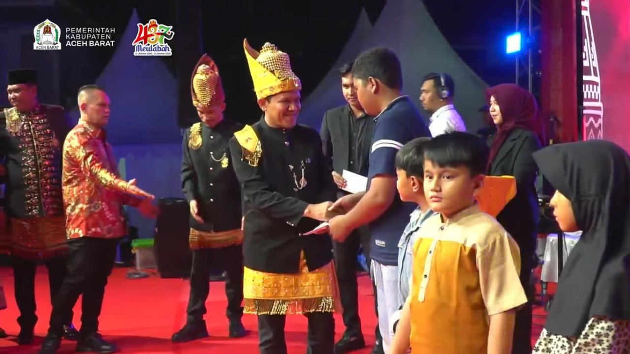 BSINews.id | Aceh Barat –Malam pembukaan (Opening Ceremony) peringatan Hari Ulang Tahun (HUT) Meulaboh ke-437 yang dirangkai dengan Pekan Kebudayaan Aceh Barat, berlangsung khidmat dan penuh makna di depan lapangan teuku Umar (11/10/2025).