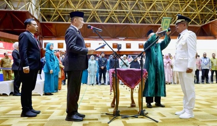 BSINews.id | Banda Aceh – Penjabat (Pj) Gubernur Aceh, Achmad Marzuki, melantik Sekretaris Daerah Kabupaten Pidie Jaya Jailani sebagai Pj Bupati Pidie Jaya, di Anjong Mon Mata komplek Meuligoe Gubernur Aceh, Senin, 5 Februari 2024.